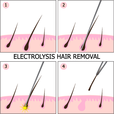 Electrolysis is a procedure that a very fine needle is inserted into the natural opening of the hair follicle alongside of the hair shaft. A minute amount of current is then gently applied to destroy the hair follicle. This energy destroys the cells responsible for hair growth, preventing the follicle from producing new hair. Over time and with a series of treatments, hair growth is permanently eliminated in the treated area. Therefore, the regenerative ability of the hair follicle is permanently eliminated.