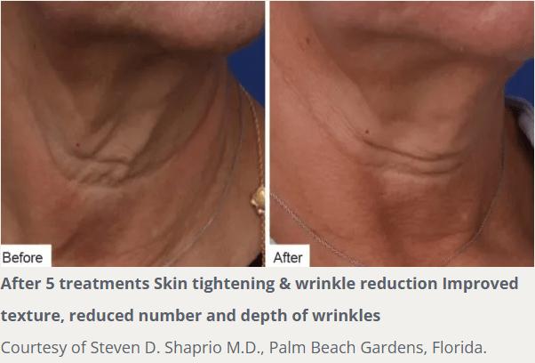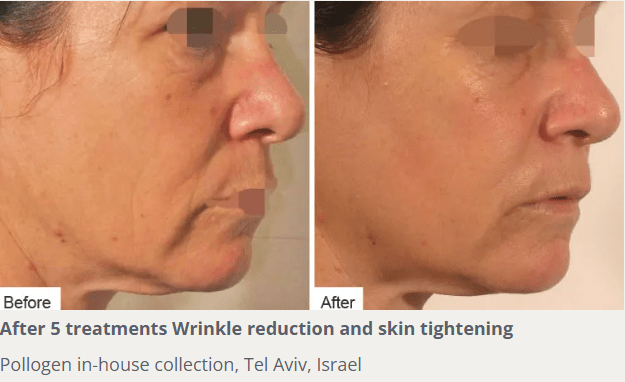 Enhances facial contours; reduces facial wrinkles; tightens the facial skin; reduces cellulite; non-invasive, no downtime